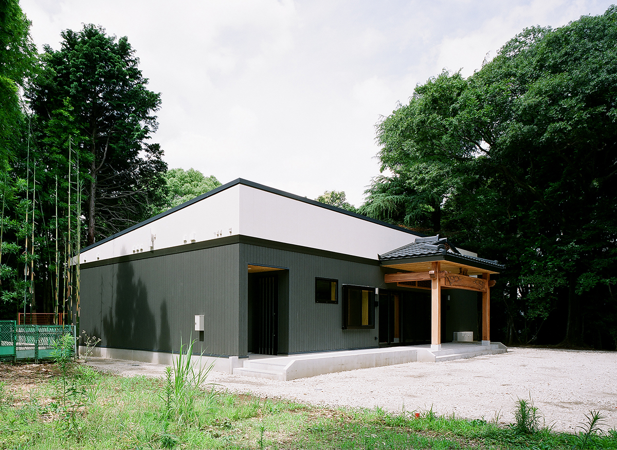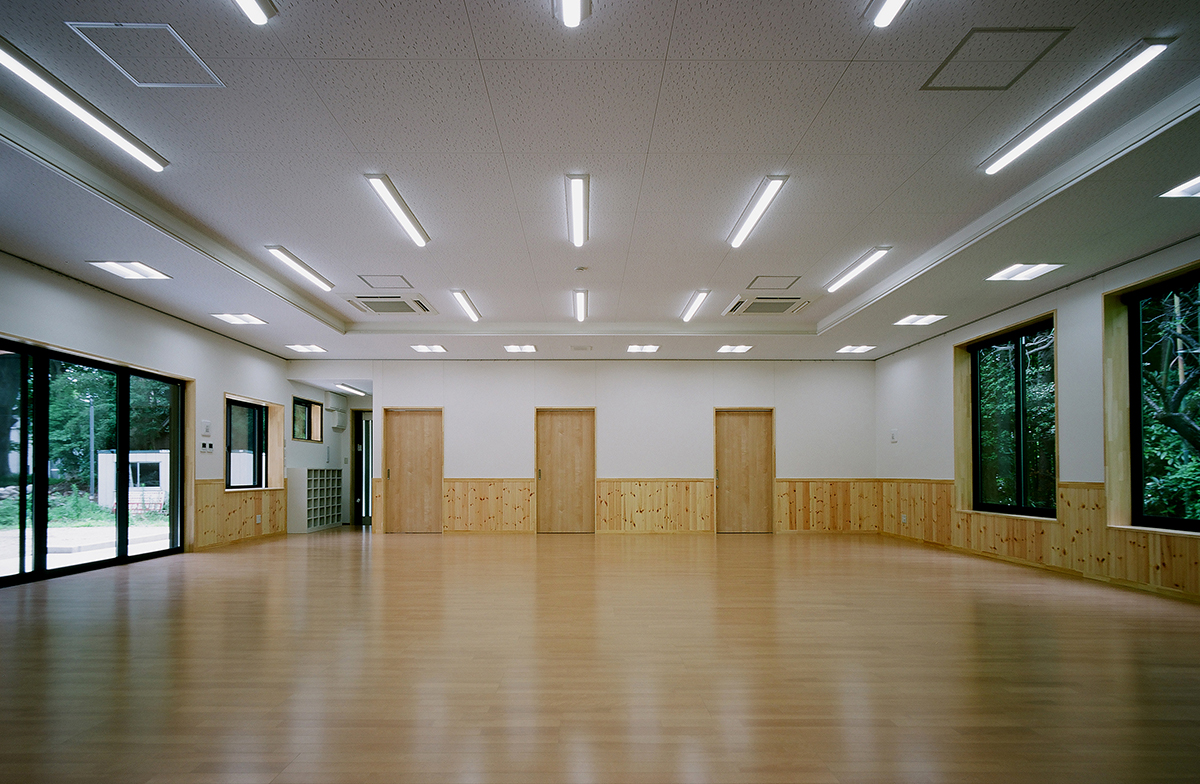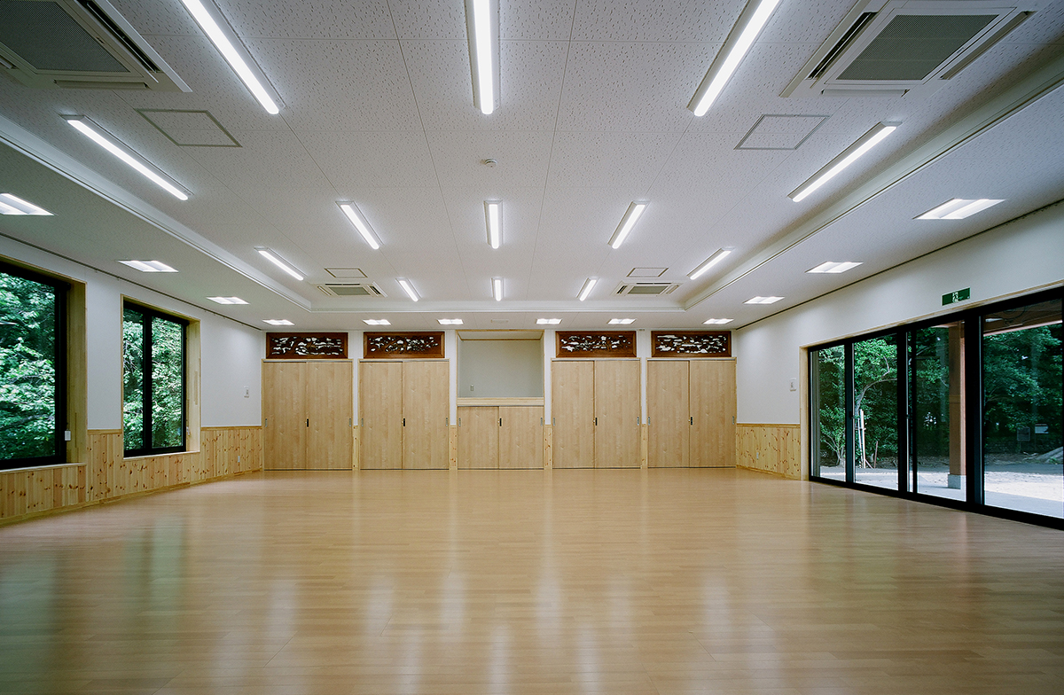 設計にあたって最優先したのは、市指定無形民俗文化財である「谷保天満宮獅子舞」の練習場としての機能です。 ダイナミックな動きを伴う獅子舞の練習や、書道教室、地域集会など、多目的な利用に対応するため、あえて木造に限定せず軽量鉄骨造を選択しました。これにより、11m×10mという「柱のない一室空間」を確保。構造形式を柔軟に検討することで、伝統芸能の継承を力強く支える室内環境を実現しています。