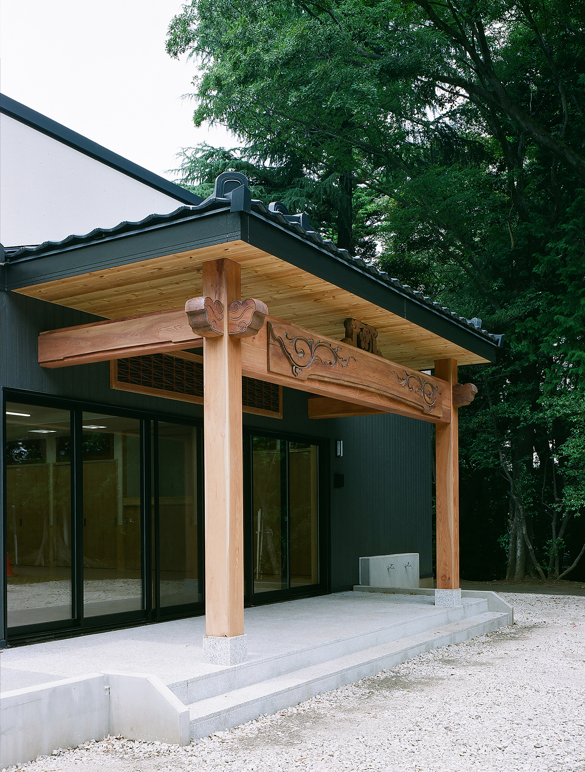 機能面では、行事の際に欠かせない更衣室や給湯室を完備し、利便性を大幅に向上させました。 また、入口には緩やかなスロープを設け、境内の段差を解消。小さなお子様からご高齢の方まで、誰もが安心して集えるバリアフリーな環境を整えています。