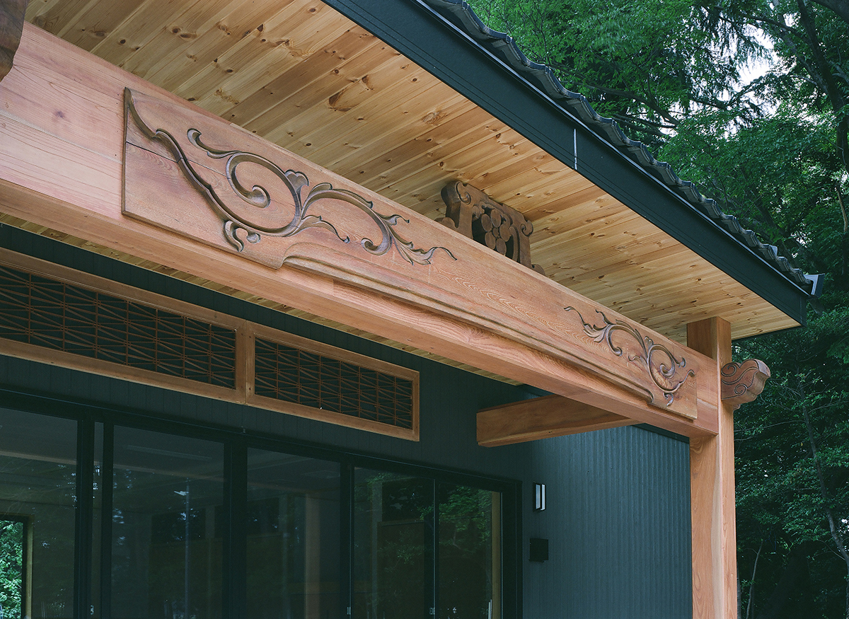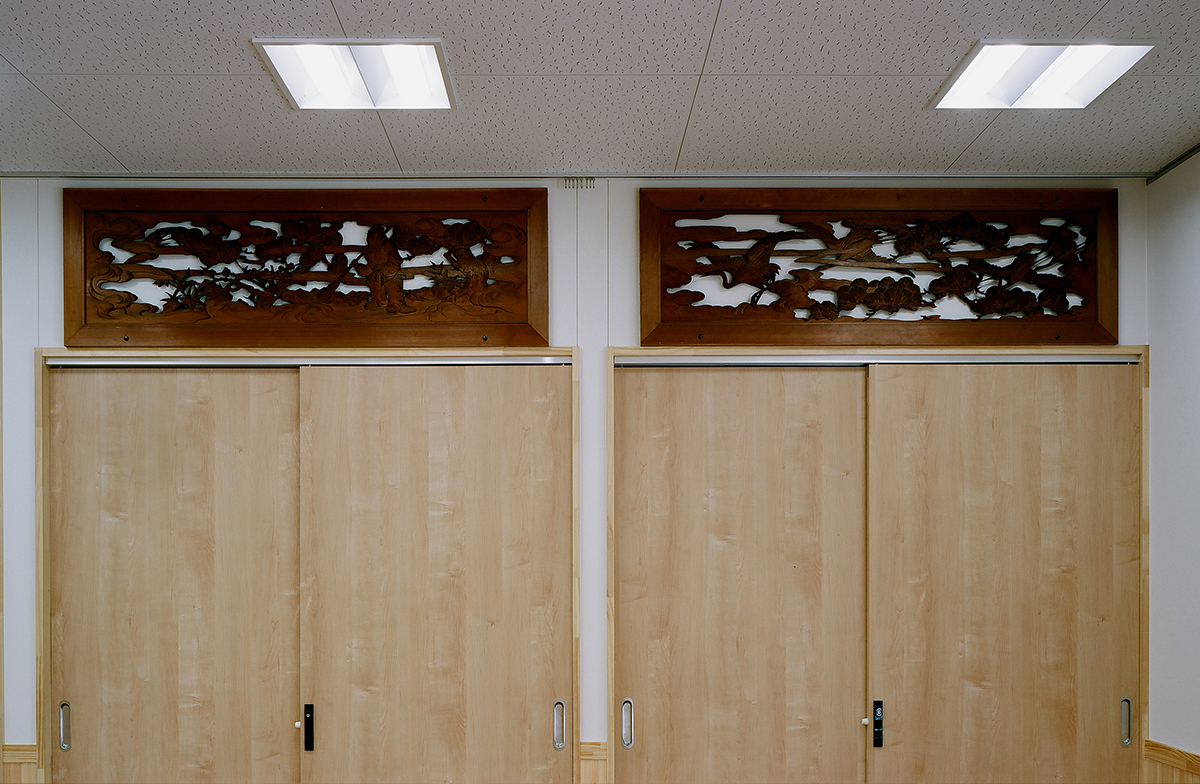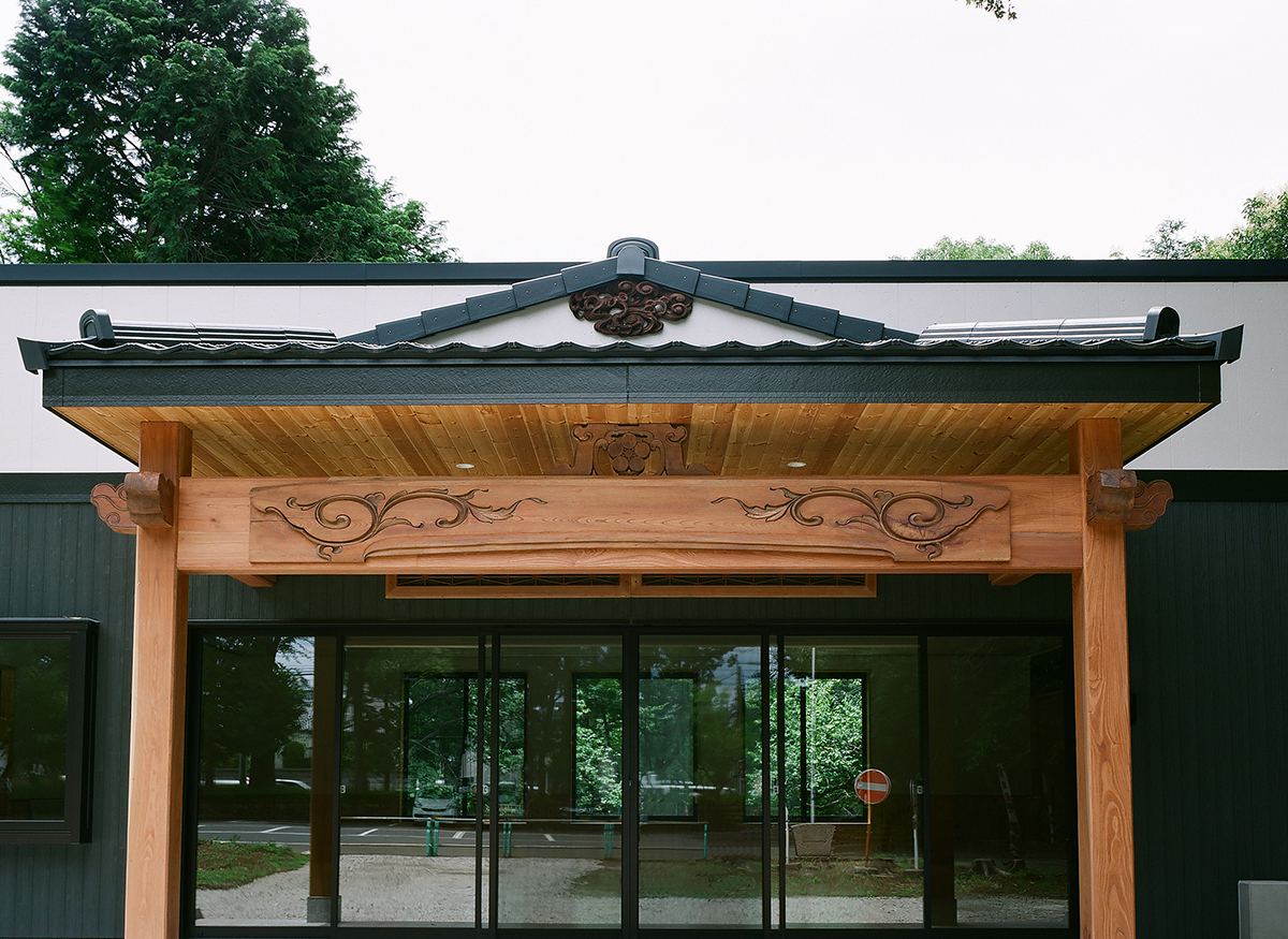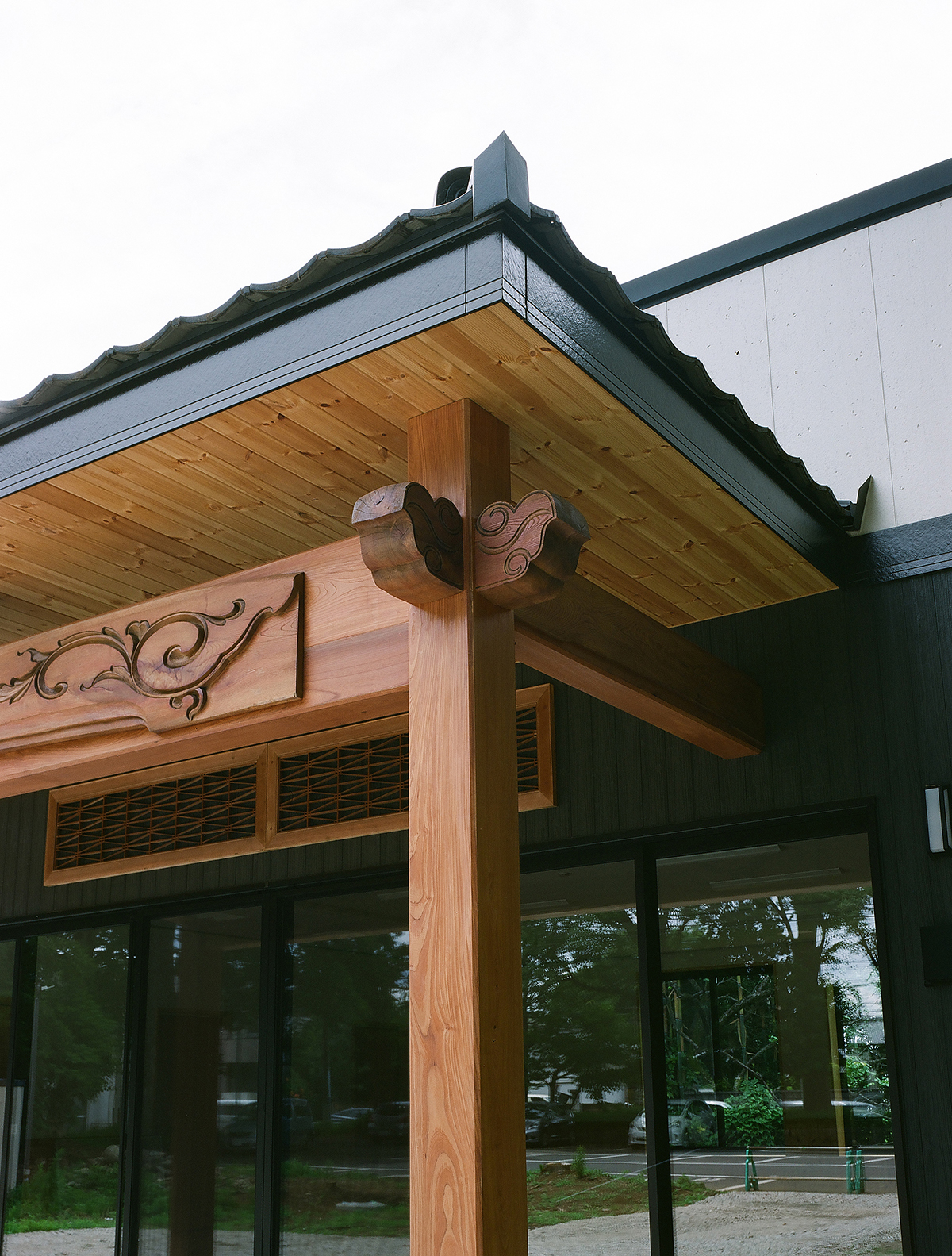 単に新しい建物を作るのではなく、かつての参集殿が刻んできた「記憶の継承」を意匠の核としています。 先代の建物で人々に親しまれてきた入口の門構えの柱彫刻や、繊細な欄間(らんま)彫刻を丁寧に抽出し、新参集殿へと再配置しました。